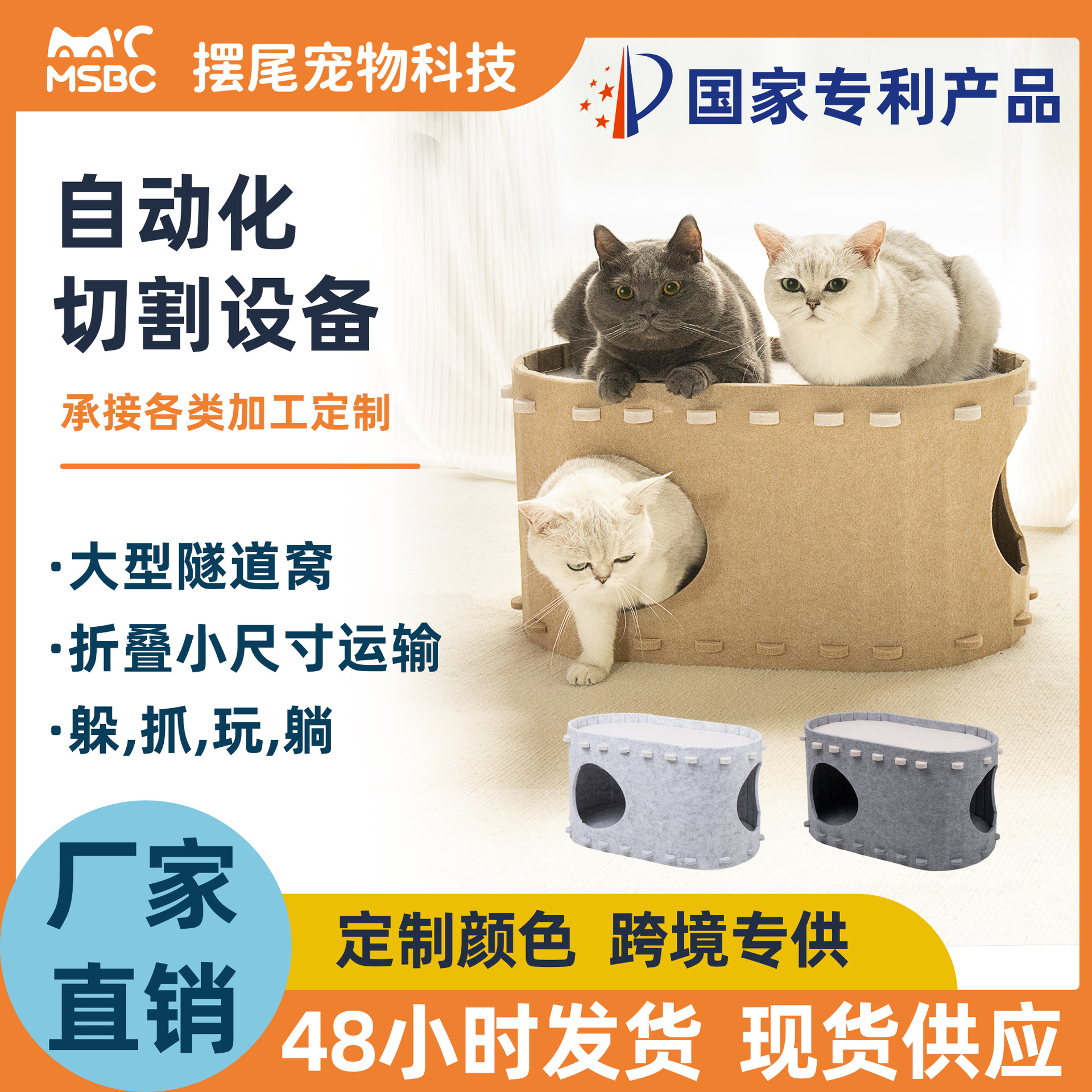 Mainan kucing universal, sarang kucing desain terowongan kucing universal empat musim lapisan ganda ruang besar tahan aus tahan gores mudah perawatan