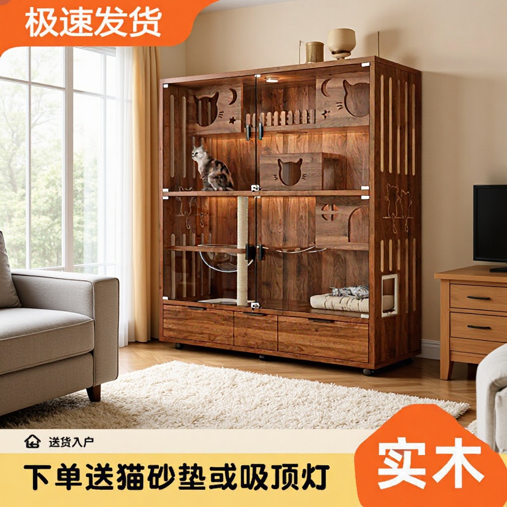 Gratis Ongkir Rumah Kucing Kandang Kucing Rumah Kucing Kandang Kucing Kelas Atas Rumah Kucing Kayu Solid Rumah Kucing Kaca Tempered Villa Sekarang