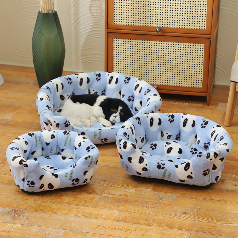 Kartun Panda Pola Flanel Kandang Hewan Peliharaan Elips Lembut Tambah Beludru Alas Hewan Peliharaan Universal Produk Hewan Peliharaan Kucing dan Anjing