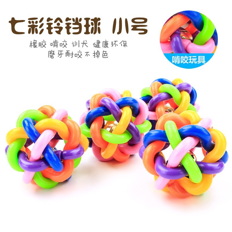 Spot Grosir Hewan Peliharaan Bola Mainan Warna Warna-warni Bola Lonceng Dentang Bola Kecil Sedang Besar Mainan Anjing Grosir Bola Pelangi Mainan Kucing