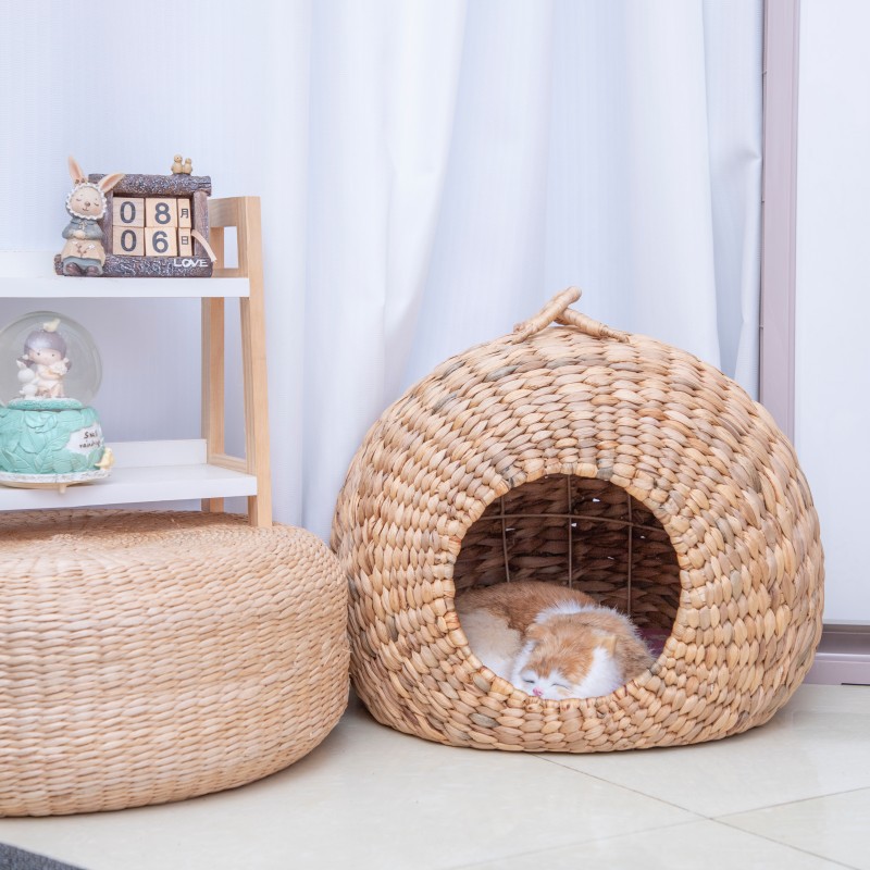 Tempat Kucing Tenun Rumput Musim Panas Tempat Hewan Peliharaan Universal Empat Musim Tempat Tidur Kucing Semi Tertutup Tempat Tidur Kucing Rumah Kucing