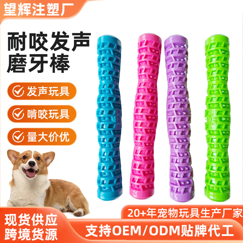 Mainan hewan peliharaan tahan gigitan tongkat gosok gigi mainan anjing TPR terdengar gosok gigi mainan interaktif hewan peliharaan tahan gigitan