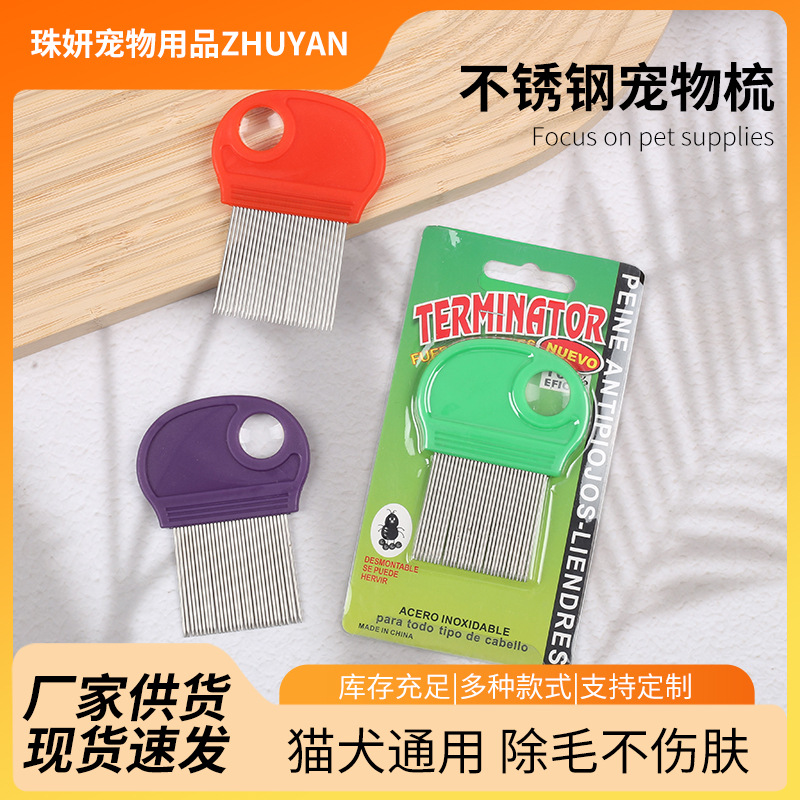 Produsen Grosir Sisir Pembersih Hewan Peliharaan Gagang Panjang Sisir Gigi Lurus Anjing Kucing Sisir Kutu Sisir Produk Hewan Peliharaan