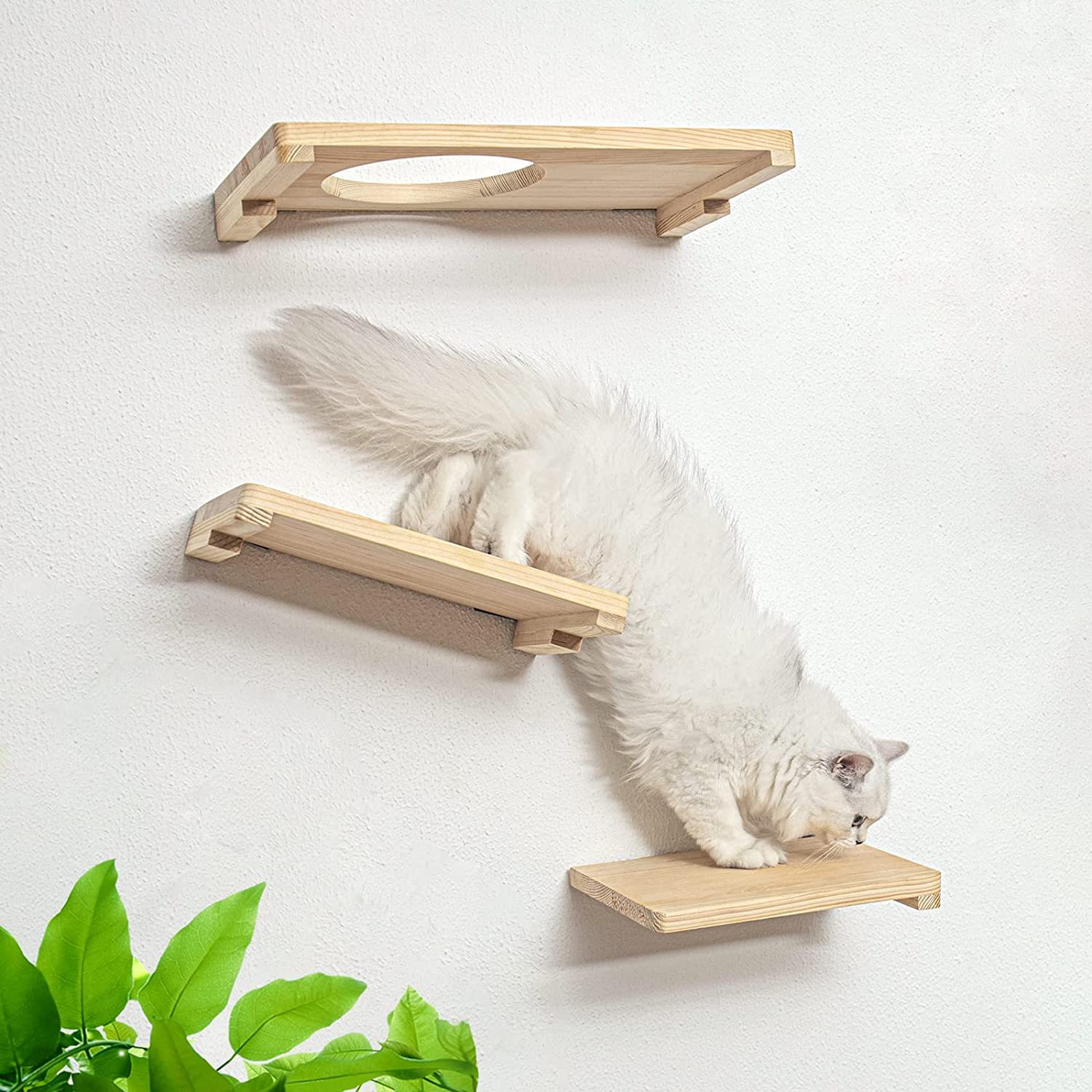 Rak dinding kayu kucing, rak memanjat rumah dekorasi dinding kucing, mainan panjat kucing kayu polos papan goresan terpasang di dinding