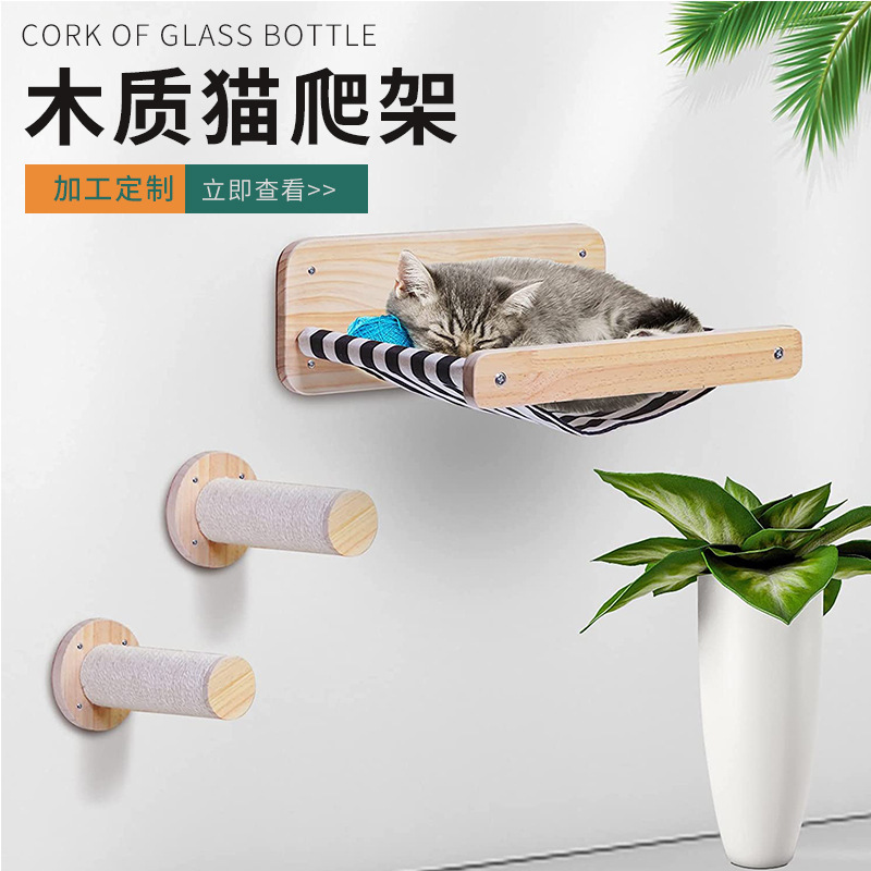 Penjualan langsung dari pabrik tempat kucing pasang dinding sarang kucing kayu solid pilar garuk kucing sisal terpasang di dinding mainan panjatan cakar kucing platform Gerinda papan garuk