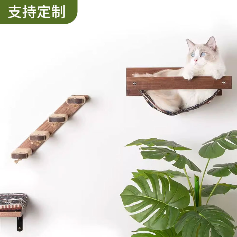 Rak panjat dinding kayu padat untuk kucing, rak sarang kucing terpasang di dinding tangga memanjat papan lompat kayu