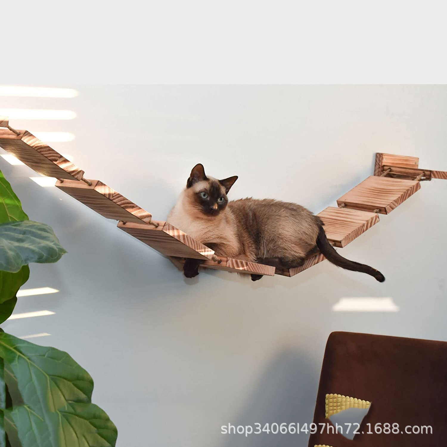 Dinding multi-lapisan rak panjat kucing tali sisal perlengkapan mainan kucing tangga kayu lintas batas dinding tangga panjat kucing kayu