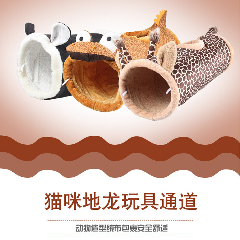 Jizai mainan kucing bentuk hewan lucu, sarang kucing lipat saluran naga terowongan kucing bergulir