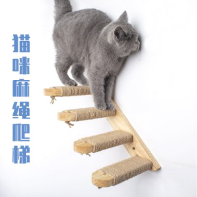 Sederhana baru kucing kayu padat terpasang di dinding rak panjat sisal karet kayu springboard tangga multi-lapisan kucing rak papan gores