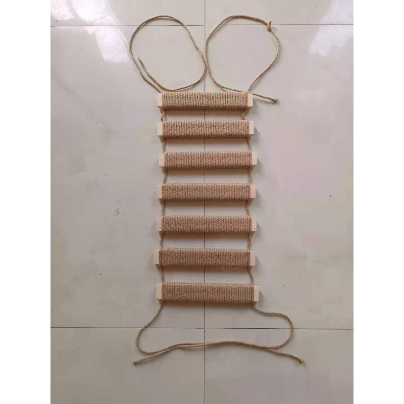 Rak Pendakian Tangga Tali Lembut Kucing Kayu Solid Aksesoris Tangga Tangga Kucing Tali Linen Tangga Lembut Jembatan Gantung Kucing Rak Pendakian Kucing