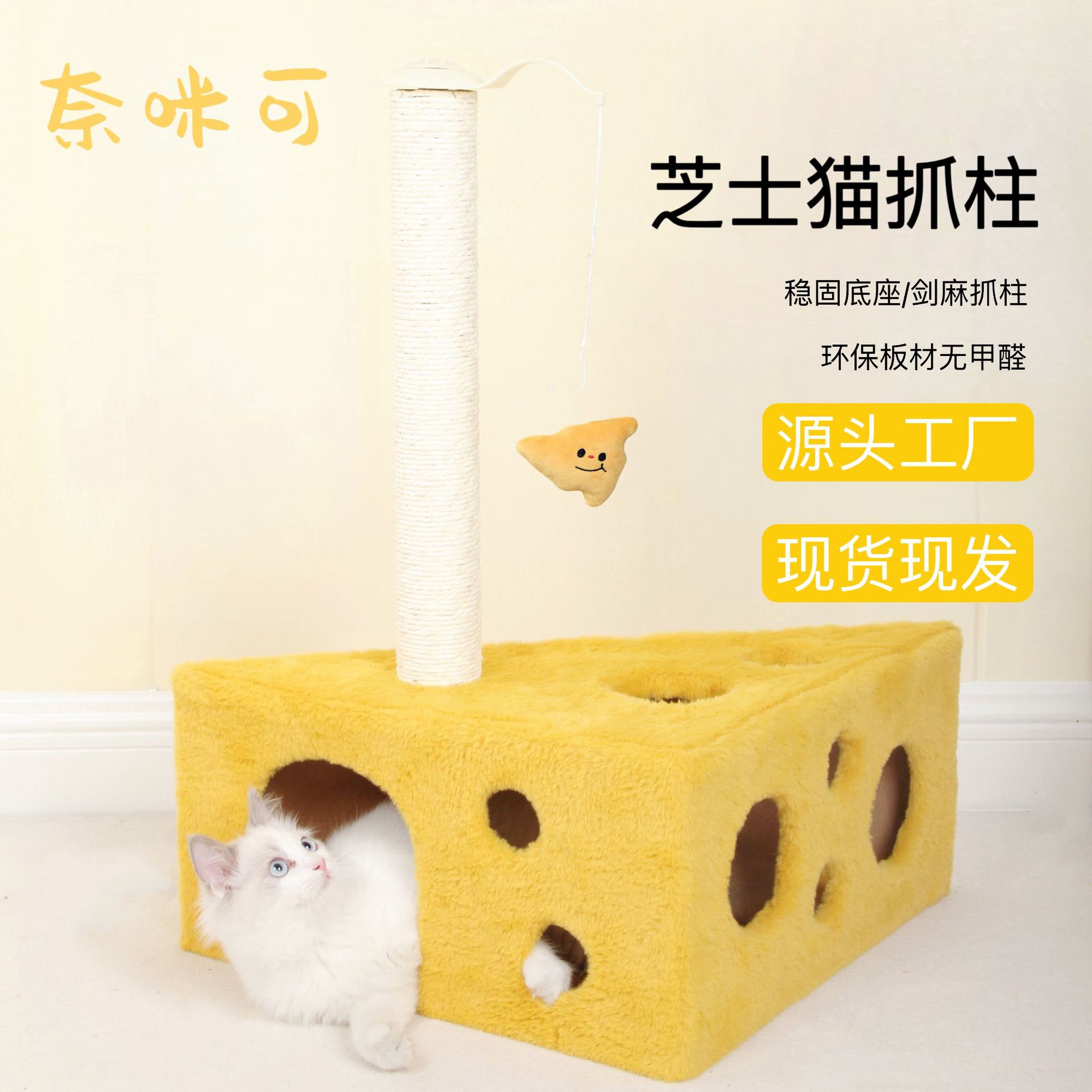 Zemike bingkai panjat kucing, terintegrasi keju kucing menggaruk post dengan lubang kucing mainan sarang kucing perlindungan lingkungan plat tahan gores
