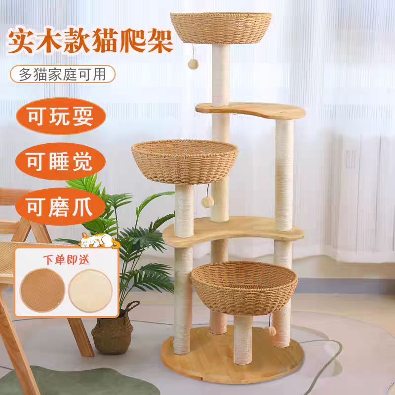 Tongtianzhu Rak Pendakian Kucing Kayu Solid Model Kustom Kucing Sarang Kucing Satu Ruang Ruang Pohon