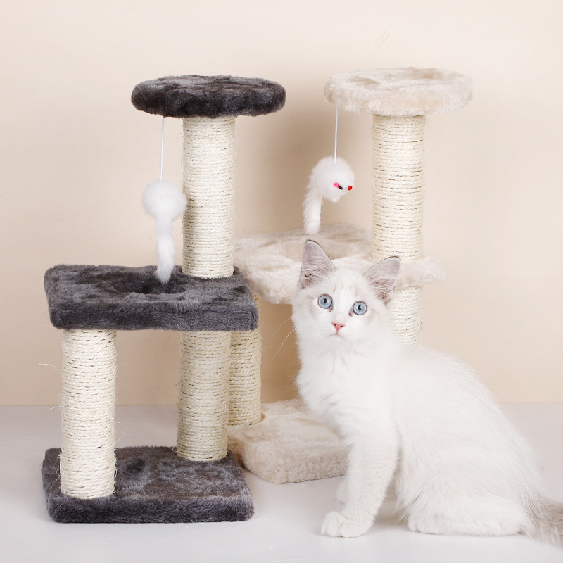 Rak panjat Sisal kucing, mainan kucing tikus tiga lapis terintegrasi grinding cakar kucing memanjat rak multi lapisan grosir platform melompat kucing hewan peliharaan
