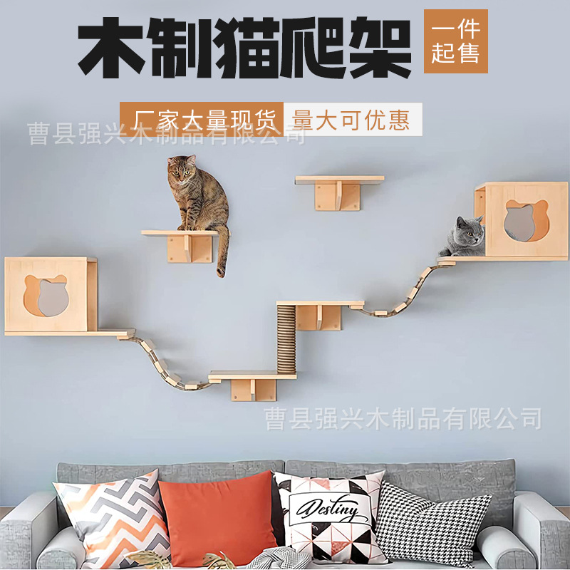 Produsen di dinding kucing bingkai panjat tebing kayu solid dinding kucing melompat platform kucing papan gores dinding melompat platform sarang dinding kucing