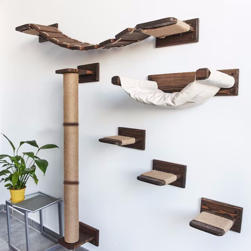 Cross-border gantungan dinding kucing kayu padat baru rak springboard kayu solid kucing memanjat tempat tidur gantung kucing hemat ruang kolom rami gosok kucing