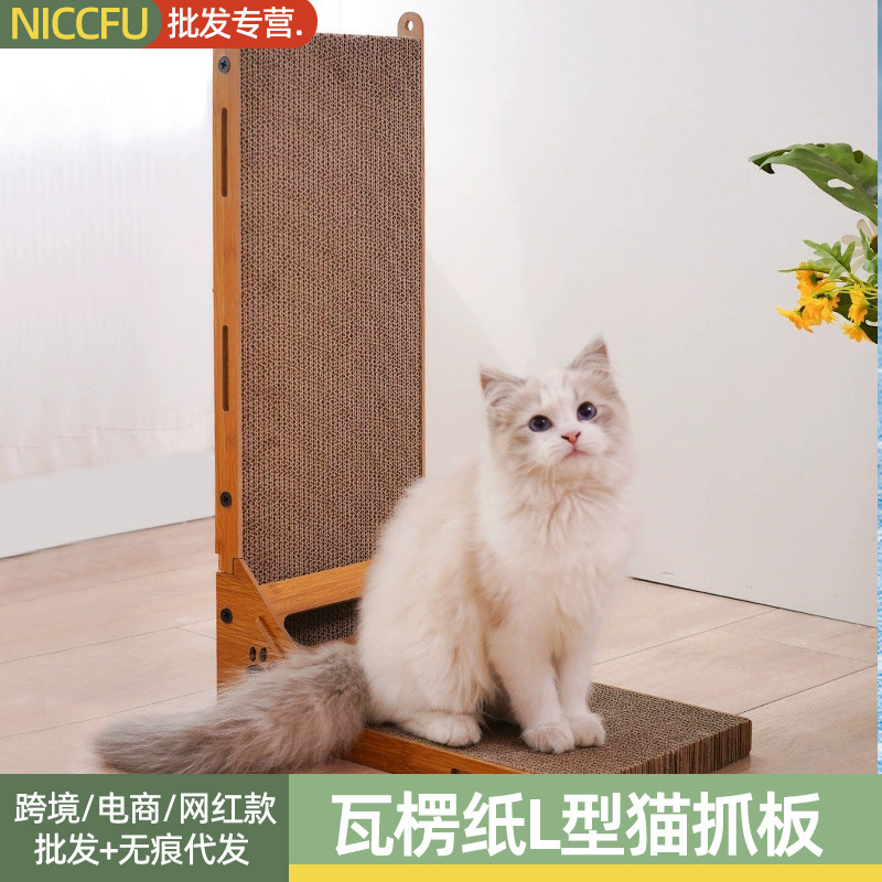 Kertas bergelombang tipe L papan gores kucing bola bulu vertikal pendakian bingkai Gerinda cakar mainan kucing anti-ketombe grosir tahan aus tahan gores