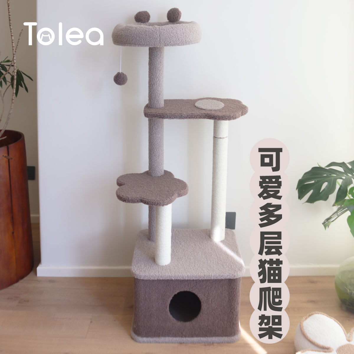Bingkai pendakian kucing baru anti-lengket warna coklat sarang kucing bulu tali rami empat musim mainan kucing Gerinda kolom cakar platform lompat kucing kecil