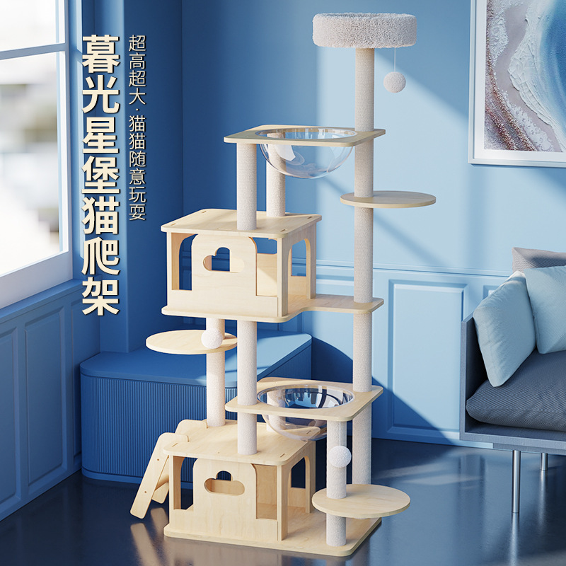 Hewan Peliharaan Model Baru Besar Climbing Net Rak Climbing Kucing Kayu Solid Cat Nest Platform Leapping Kolom Kucing Sarang Kucing Produk Terpadu Pohon Kucing