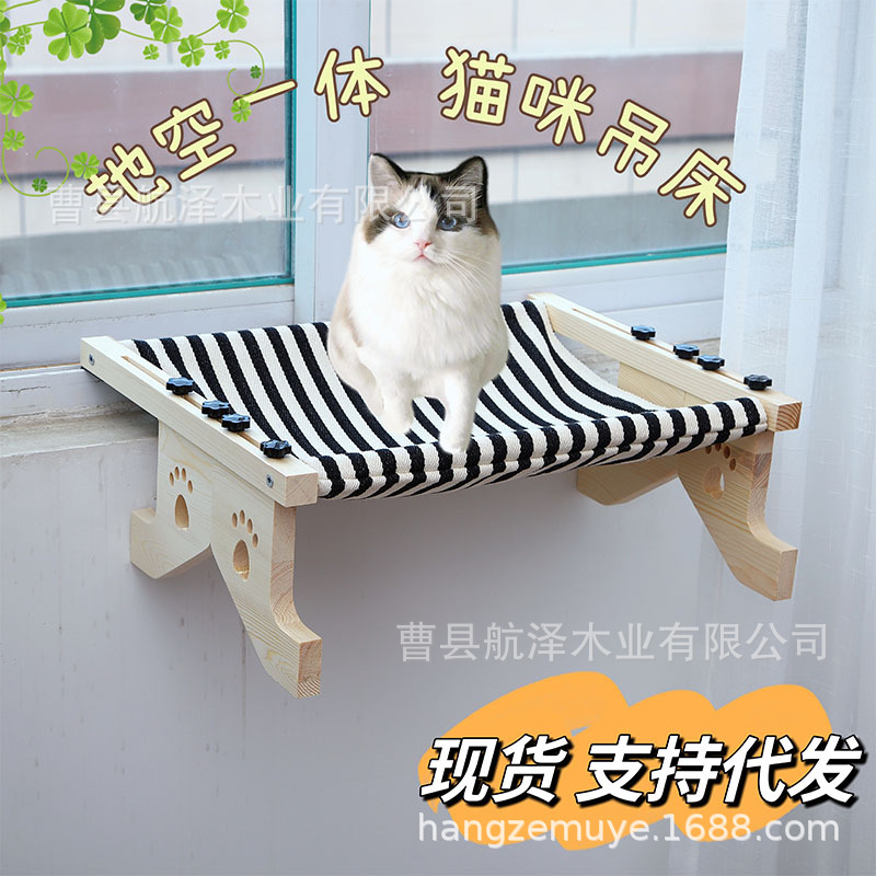 Tempat tidur gantung jendela kayu kucing, tempat tidur gantung sarang kucing jendela balkon empat musim universal
