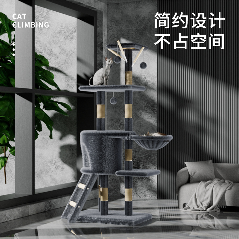 Bingkai kayu mendaki kucing imitasi kayu padat bahan kayu mudah dibersihkan perlengkapan hewan peliharaan grosir besar lembut sarang kucing besar baru pohon kucing besar