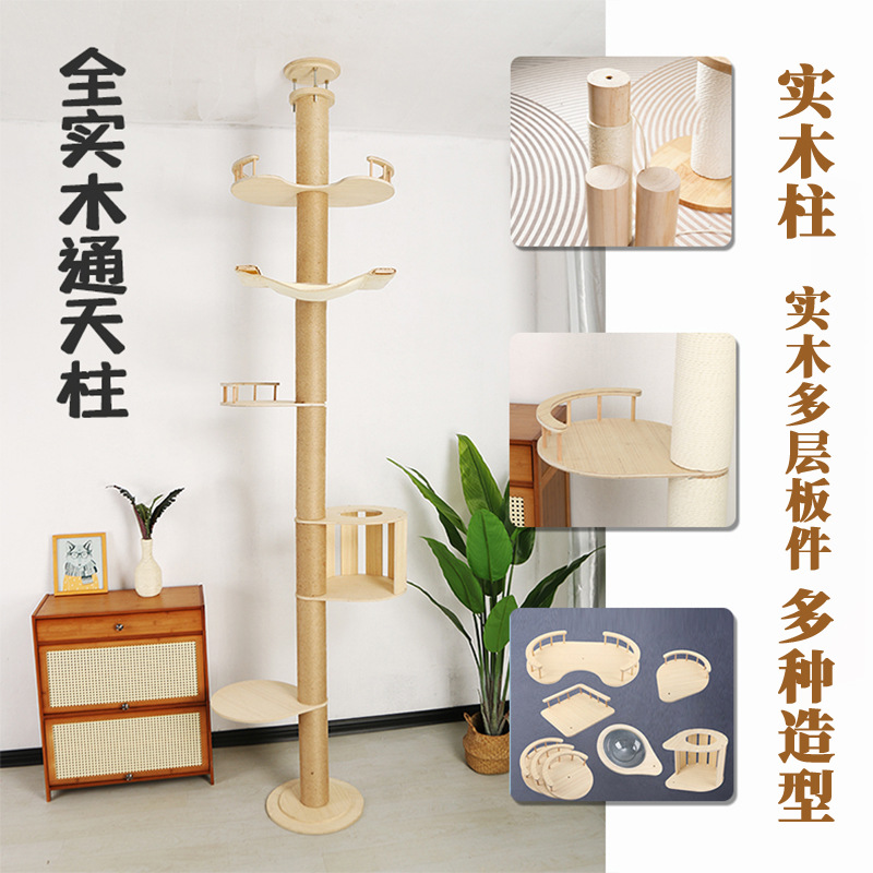 Rak Pendakian Kucing Kayu Solid Tongtianzhu Rumah Tangga Sarang Kucing Pohon Hewan Peliharaan Kucing Mainan Rak Melompat