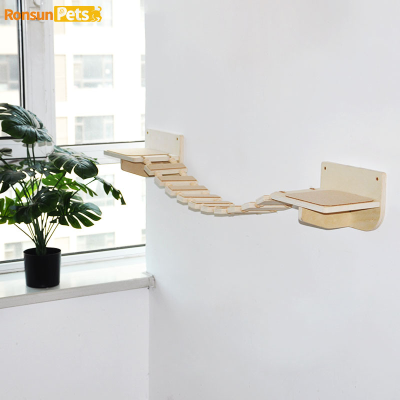 Rak panjat dinding kucing terpasang di dinding mencakup area rak panjat tebing kucing kayu kecil tangga manik-manik jembatan sederhana rak dinding kucing gantung dinding jembatan dinding