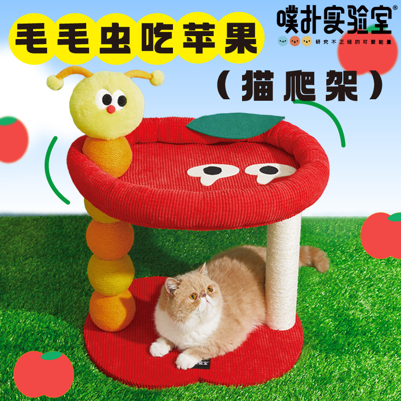 PurLab puff laboratorium Caterpillar kucing rak panjat lucu tahan gores sarang kucing melompat platform multi-layer perlengkapan hewan peliharaan
