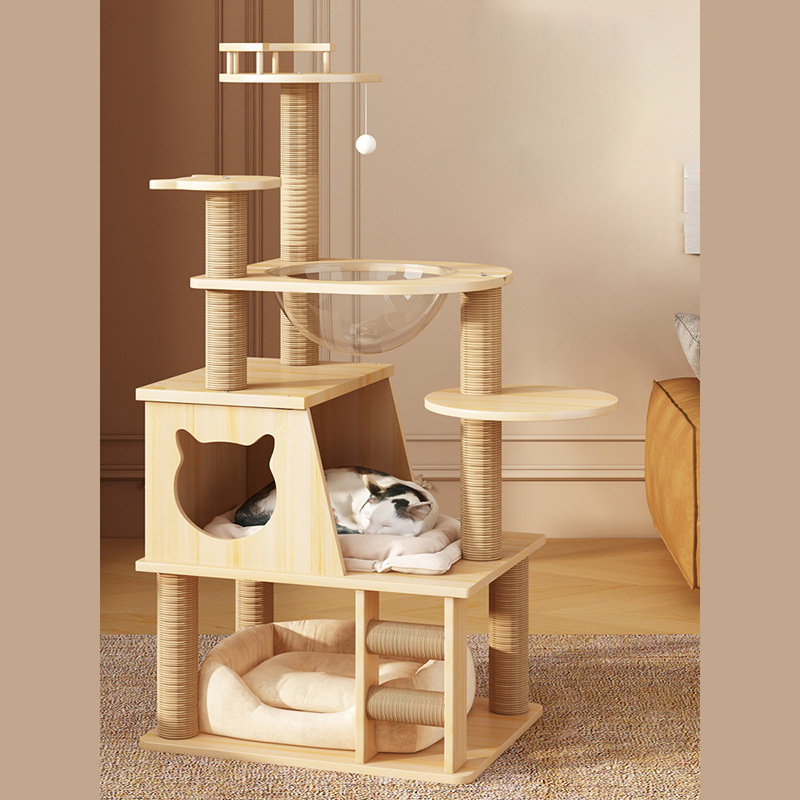 Mewah padat kayu kucing memanjat bingkai sarang kucing pohon kucing terintegrasi kucing menggaruk post melalui Tianzhu ruang kapsul kucing perlengkapan lintas batas grosir