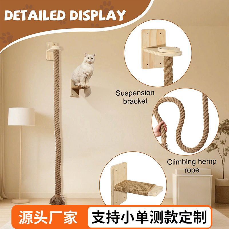 Amazon Pabrik Grosir Kayu Sisal Kucing Rak Panjat Dinding Dinding Rak Panjat Kucing Papan Genggam Kucing Tempat Kucing