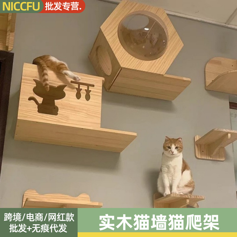 Pabrik Springboard penjualan langsung dinding sarang kucing kayu solid dinding gantung pilar kucing menggaruk post mainan melompat platform menggiling cakar kucing papan menggaruk