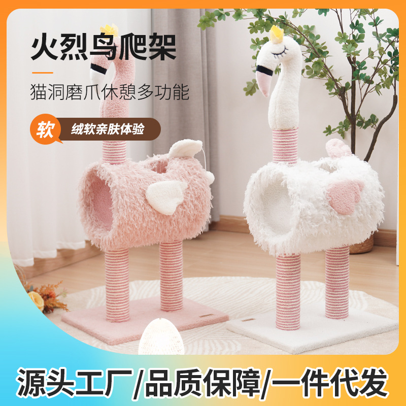 Flamingo kucing memanjat bingkai sarang kucing terintegrasi sisal tahan aus pohon kucing menggaruk pos kucing lucu kucing kecil papan menggaruk perlengkapan kucing