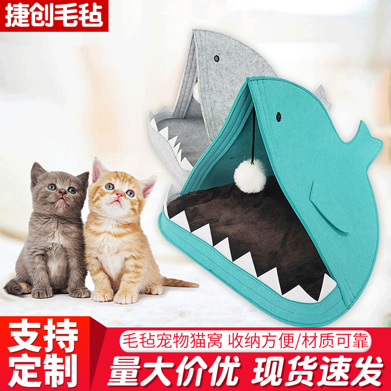 2023 baru kreatif bentuk hiu merasa hewan peliharaan kucing sarang empat musim dilepas dan dicuci multifungsi merasa sarang kucing sarang anjing