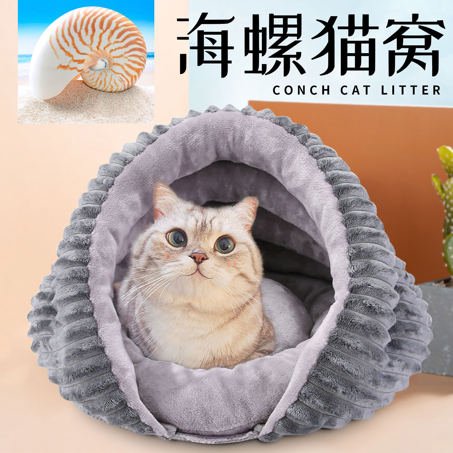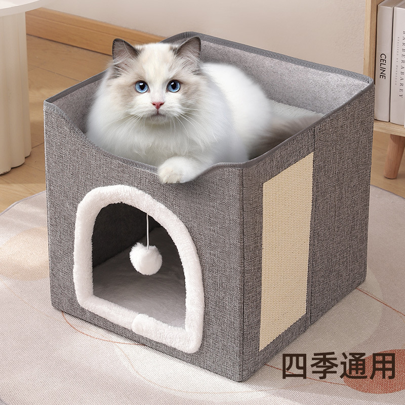 Perlengkapan hewan peliharaan Amazon sarang kucing universal empat musim lapisan ganda lipat baru sarang kucing Gerinda semi-tertutup hangat sarang kucing cakar