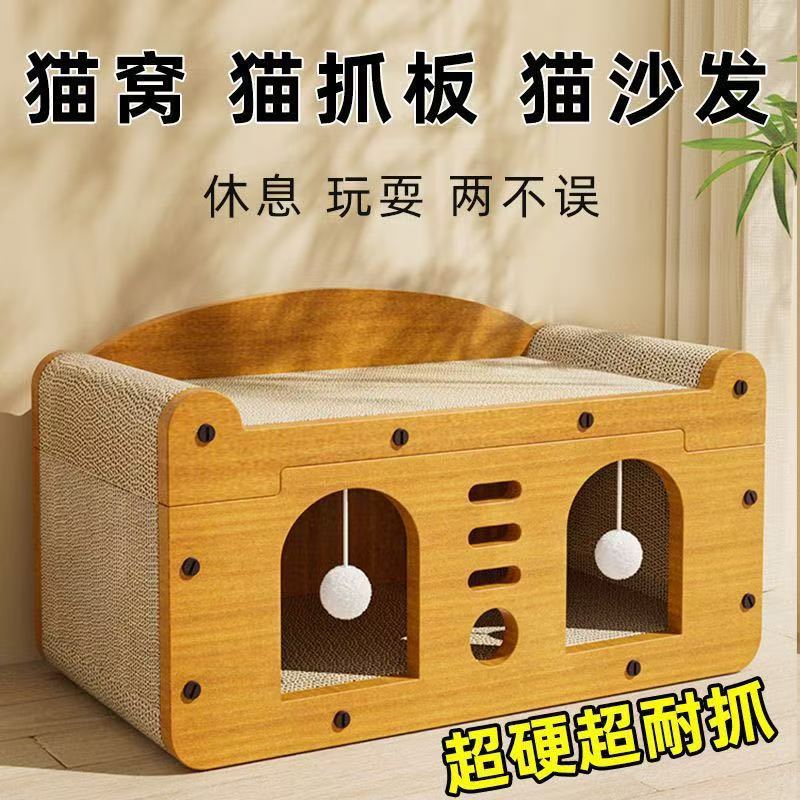 Kucing Rumah Kucing Rumah Kucing Papan Genggam Kucing Satu Sistem Tahan aus Tidak Ada Puing-puing Sofa Dua Lapis Berdiri Empat Musim Universal Kertas Bergelombang Rumah Kucing