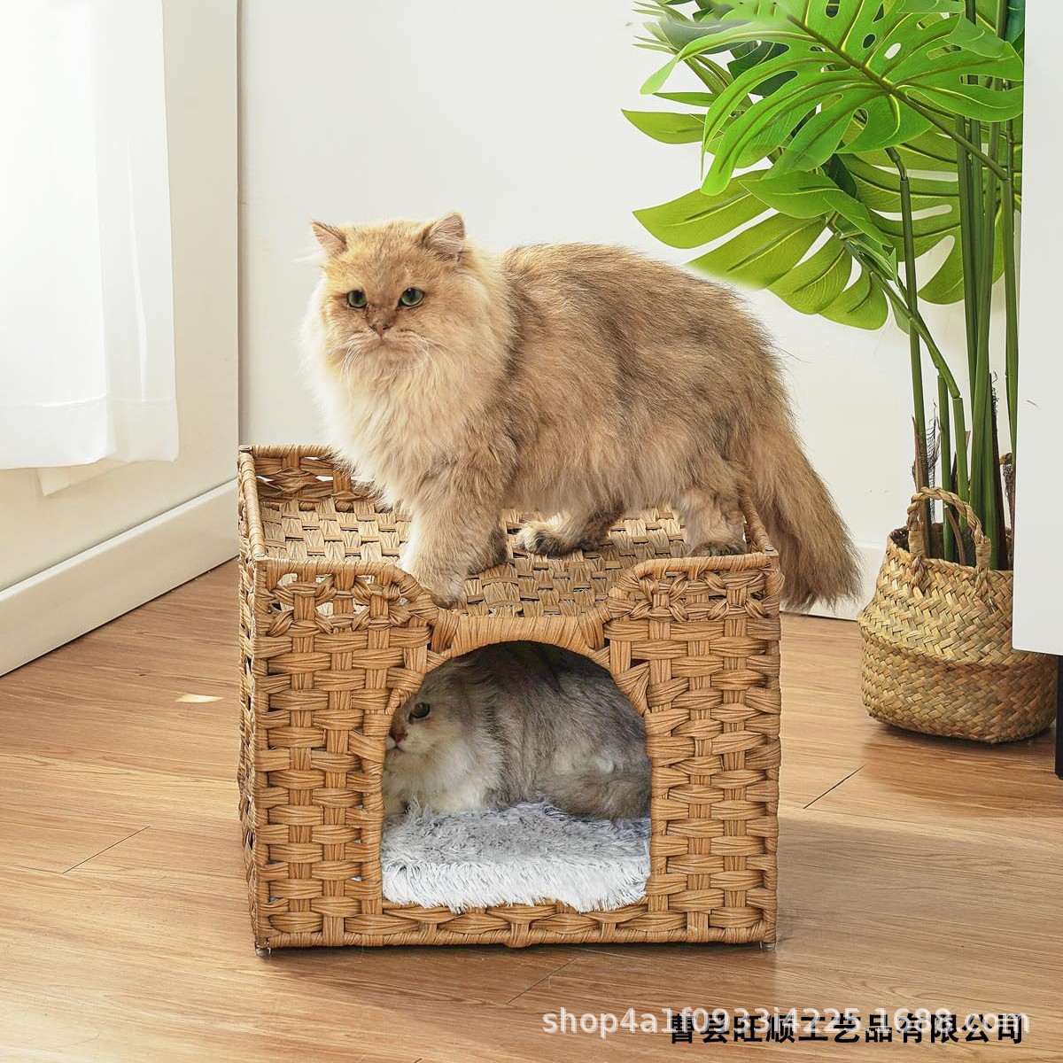 Rotan Dikepang Tangan Tempat Tidur Hewan Peliharaan Bisa Dilipat Tempat Tidur Kucing Dalam Ruangan Rotan Dengan Pintu Ruang Tamu Kamar Tidur Kucing Hewan Peliharaan