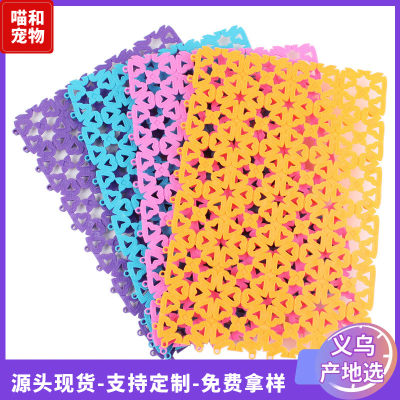 Pabrik grosir warna permen jahitan persegi Cinta tikar kaki hewan peliharaan jala anti-selip tikar kaki hewan peliharaan kandang kucing tikar anti-selip