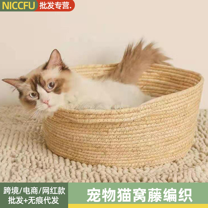 Sarang kucing rotan universal untuk musim panas, sarang kucing rotan universal empat musim, rumah kucing Teddy, sarang kucing Internet selebriti, sarang kucing musim panas hewan peliharaan