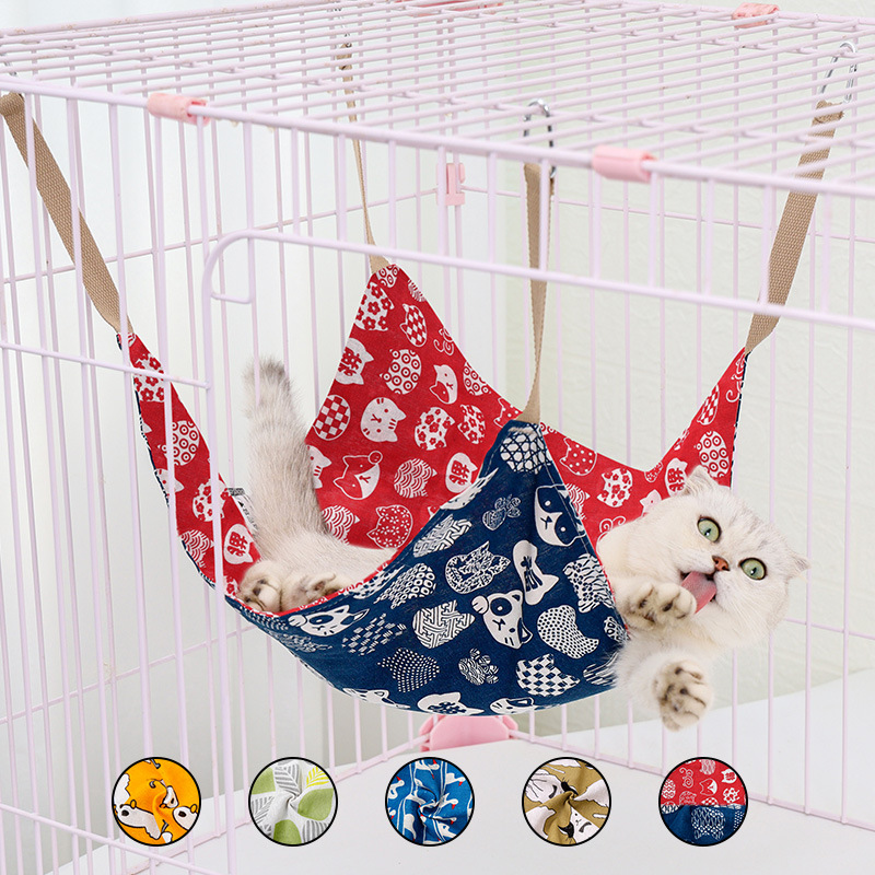 Tempat tidur gantung katun dan linen hewan peliharaan warna-warni Musim Panas kandang ayunan kucing gantung sarang kucing tikar gantung sarang kucing penjualan langsung pabrik