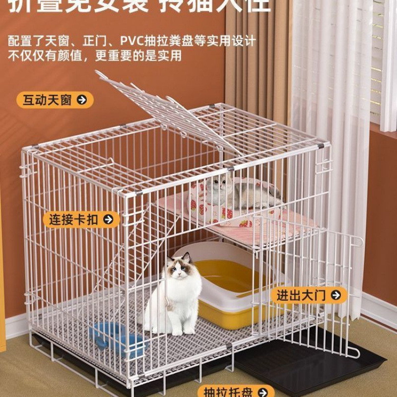 Kandang Kucing Kandang Kucing Kandang Kucing Ukuran Besar Dalam Ruangan Rumah Tangga Kandang Kucing Ukuran Kecil Model Lipat Kandang Kucing Besi Lapisan Ganda