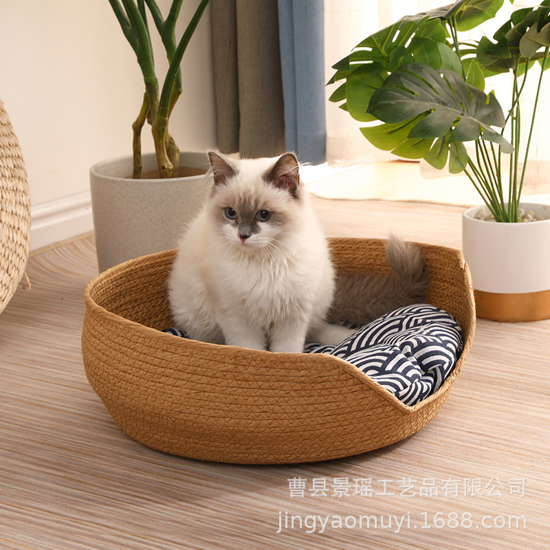 Papan gores kucing hewan peliharaan, sarang rotan tikar kucing buatan tangan dapat dilepas dan dicuci perlengkapan kucing anyaman bambu