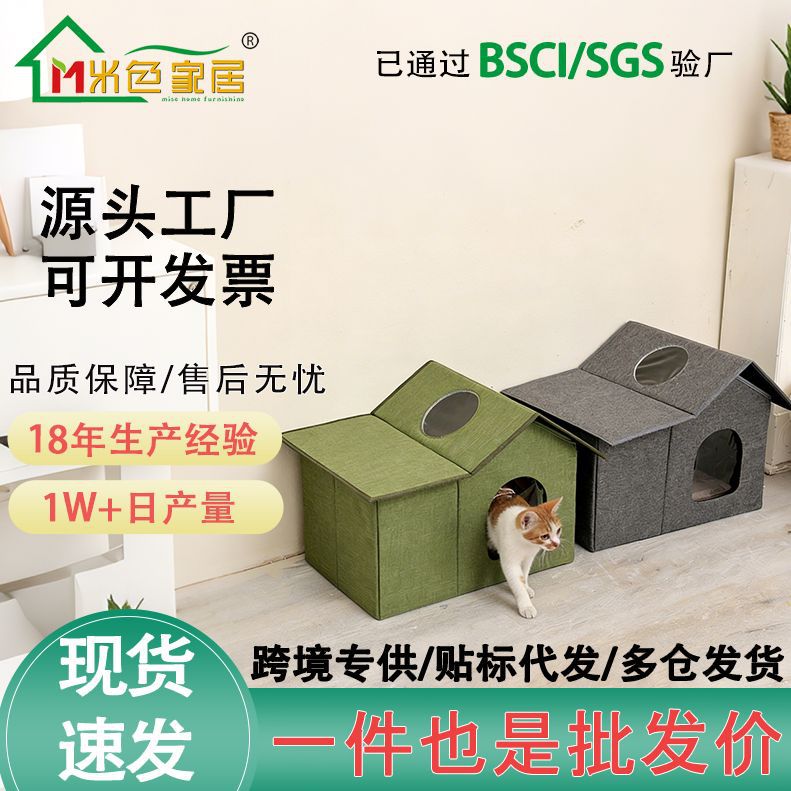 2023 baru sarang kucing kandang yurt segitiga baru sarang hewan peliharaan tertutup sarang anak anjing universal musim gugur dan musim dingin sarang kucing