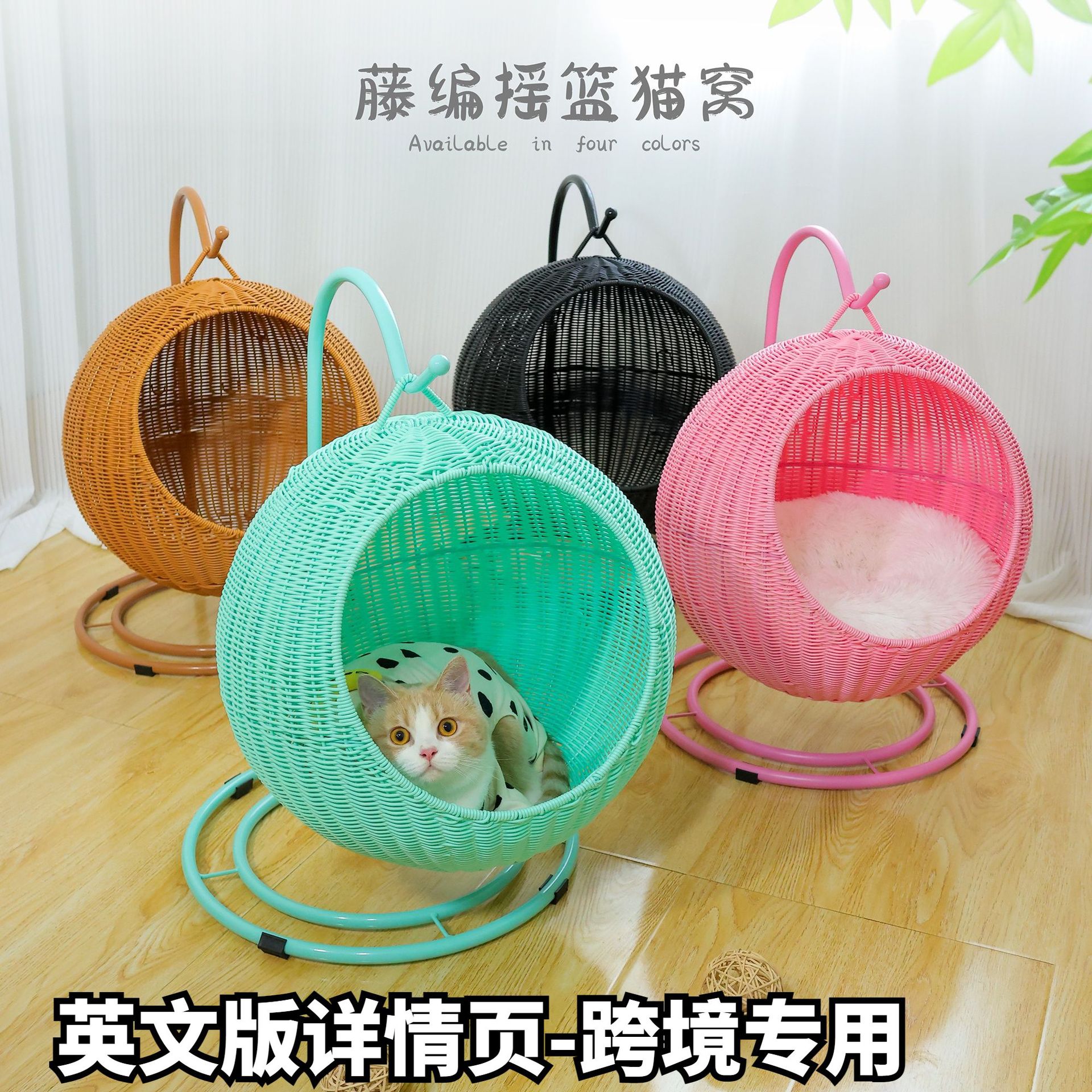 Kandang kucing sarang rotan seperti jaring merah keranjang gantung kucing musim dingin hangat sarang hewan peliharaan semi-tertutup tahan gores kandang anjing kecil