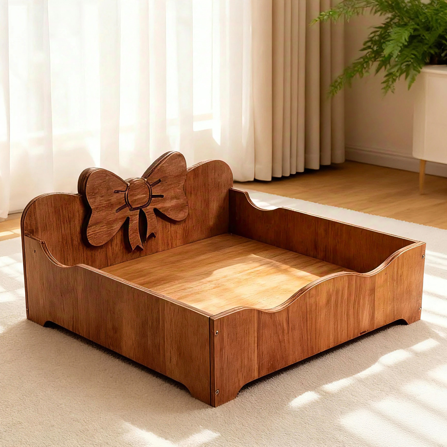 Tempat tidur kayu Solid, sarang kucing sarang tanah empat musim universal, perlengkapan tempat tidur anjing peliharaan sarang kucing anjing kecil Teddy Bomei