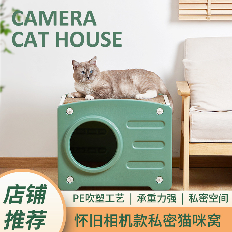 Empat musim universal sarang kucing pukulan cetakan kerajinan ruang besar tertutup kandang kucing dengan papan gores kucing hewan peliharaan sarang kucing tikar