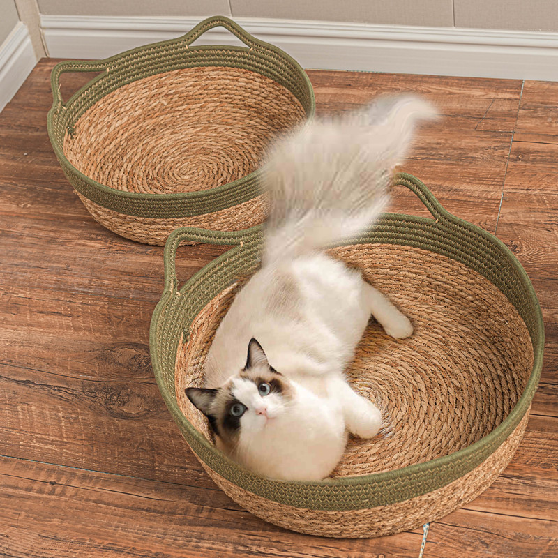 Anyaman rotan empat musim panas universal musim panas tikar kucing papan cakar tenun terintegrasi sarang keren tikar kucing tempat tidur perlengkapan sarang kucing