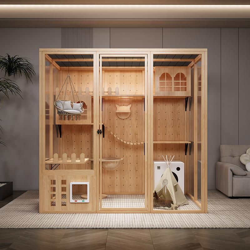Lemari pajangan kucing Lemari pajangan kucing kayu solid Ruang pengiriman kucing Kandang kucing Villa Toko hewan peliharaan dapat digunakan sebagai pengembangbiakan kucing
