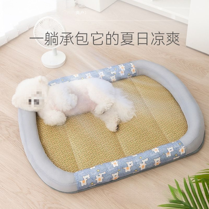 Tikar jerami rotan nyaman bersirkulasi udara sarang kucing musim panas hewan peliharaan tikar lantai sarang keren untuk tidur empat musim Universal