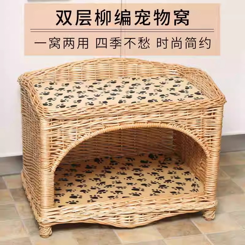 Sarang Kucing Empat Musim Universal Musim Panas Dingin Sarang Kucing Rotan Rumah Kandang Kucing Villa Ganda Rumah Kucing Rumah Tertutup Pabrik