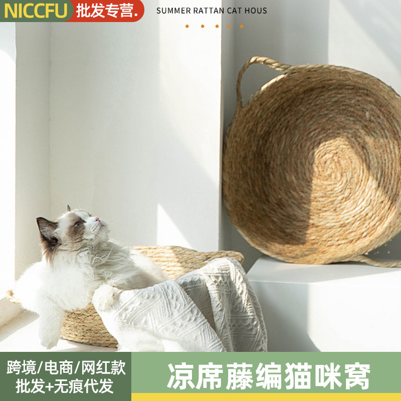 Tikar musim panas sarang kucing rotan sarang kucing anyaman musim panas sedang dan anjing kecil teddy anjing kucing empat musim sarang hewan peliharaan Universal