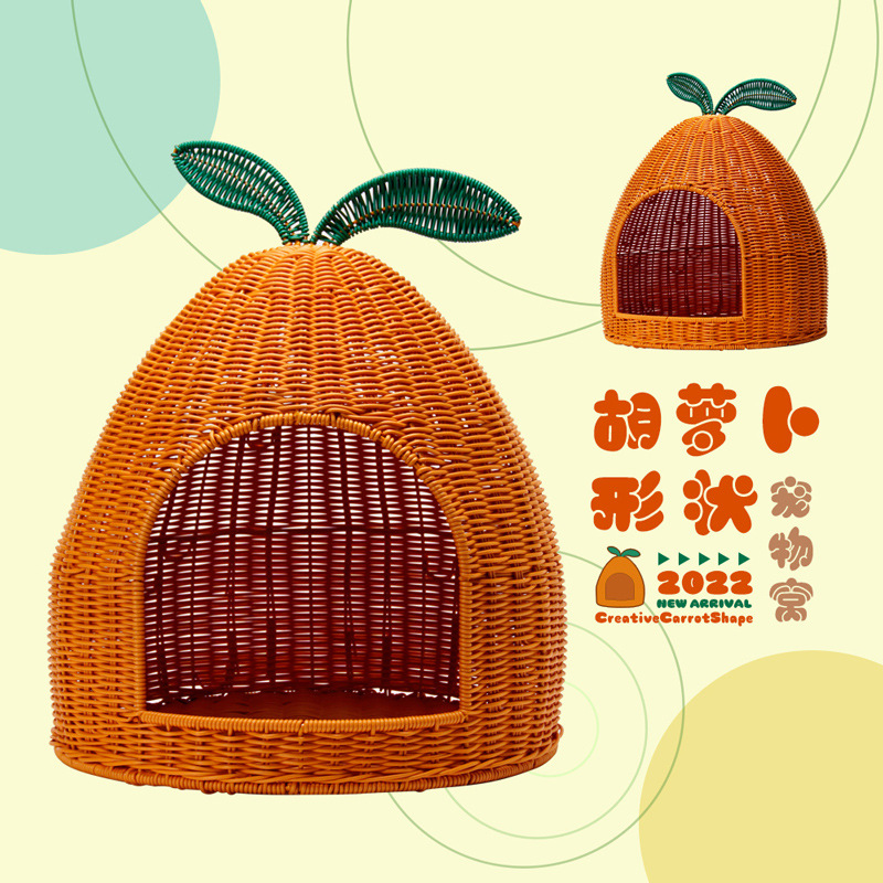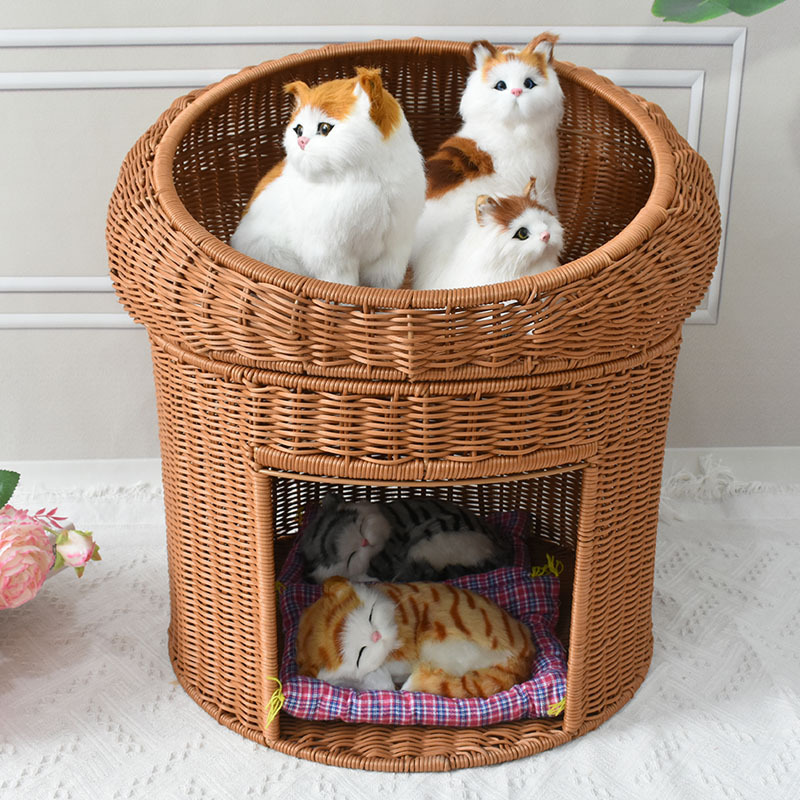 Sarang kucing empat musim universal anyaman rotan bersirkulasi udara Tempat hewan peliharaan yang dapat dicuci rumah kucing Villa semi-tertutup perlengkapan hewan peliharaan